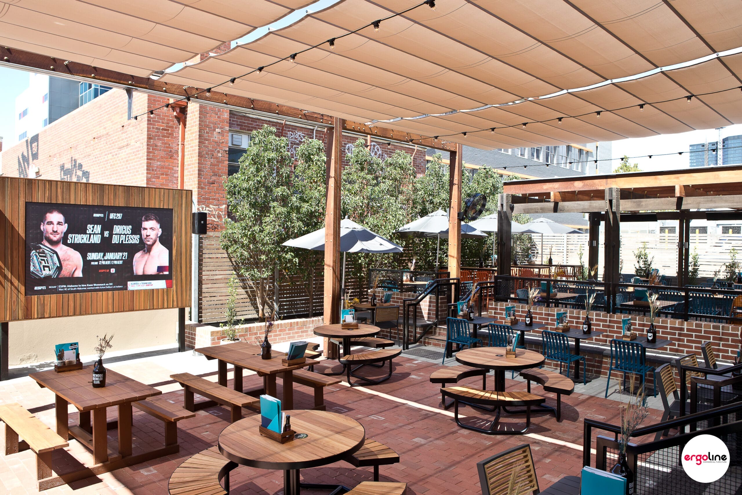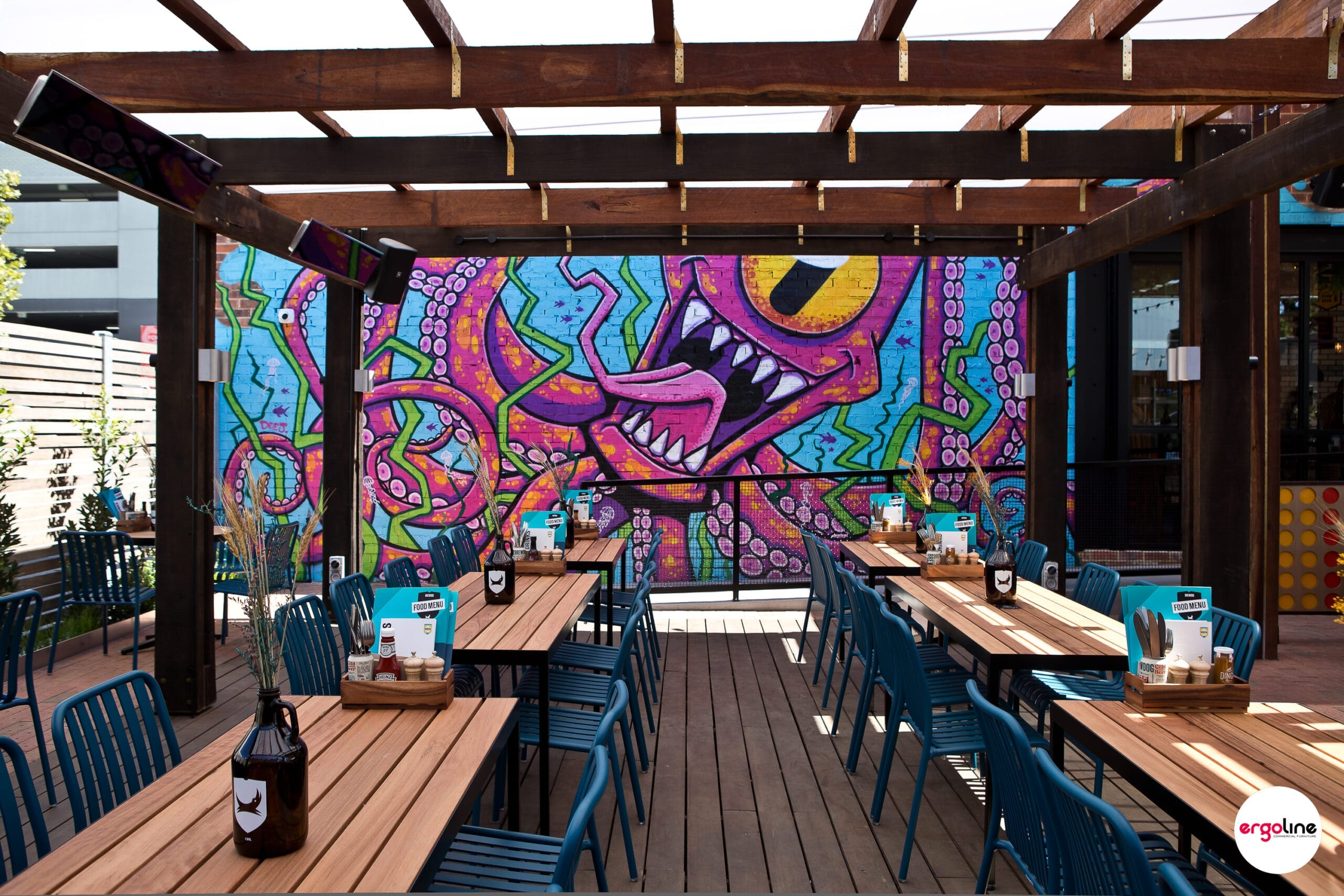 BrewDog boasts 28 taps pouring the spectrum of sours to IPA and stouts, whilst serving amazing burgers and pizzas! The first BrewDog venue in WA and the fifth in Australia! Located 550 metres from Perth Arena and less than 10 minutes’ walk from the Perth CBD and Northbridge. Transforming what was once a coffee roastery, this new venue has a capacity for 600 patrons – housing two bars and an open-air beer garden with large screens for sports-watching experiences. The fit-out incorporates BrewDog’s classic industrial style paired with a modern, comfortable feel that reflects their bold branding.