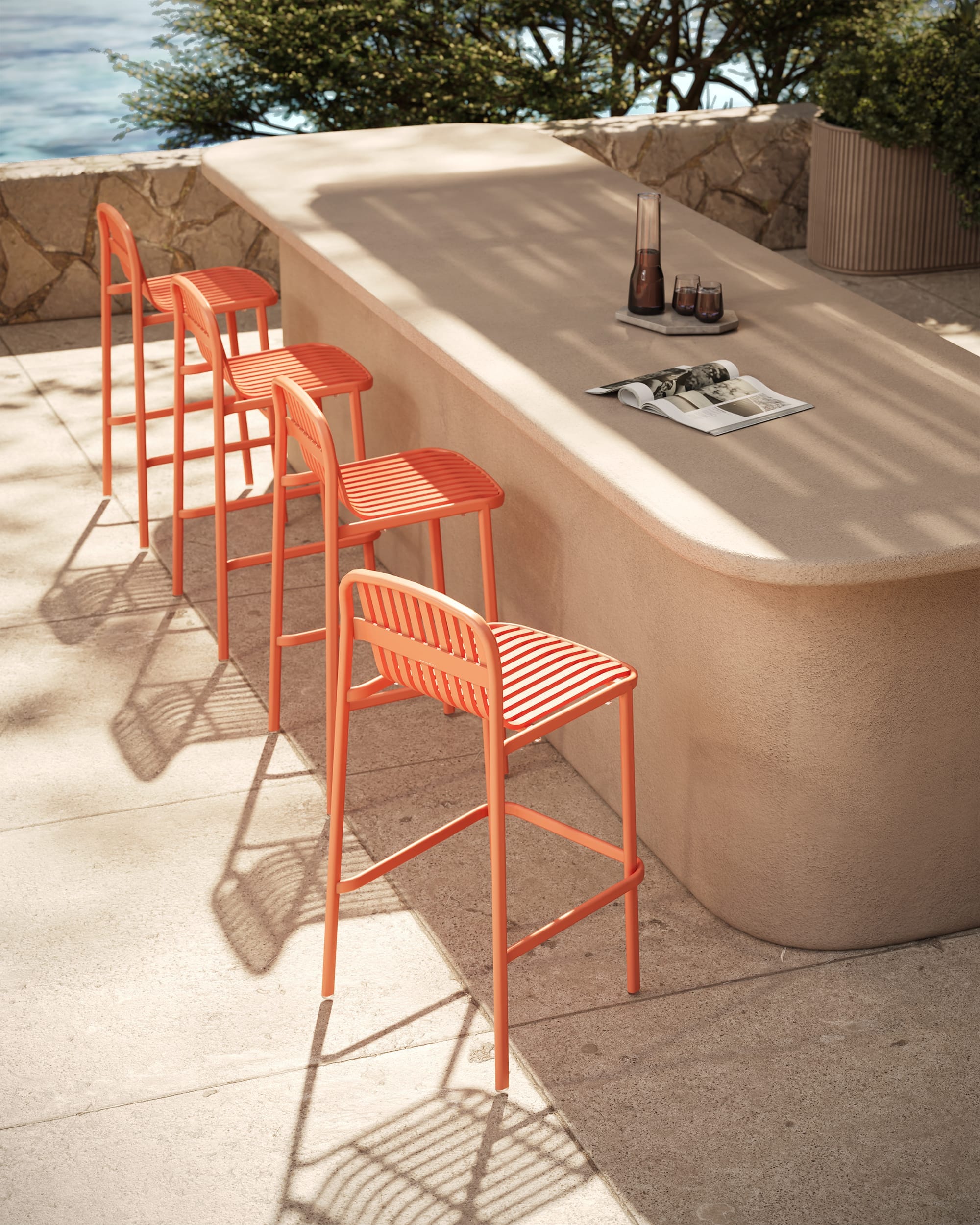 The Faro Stool by NARDI is a single bodied stool, with perforated patterns across the seat and backrest.