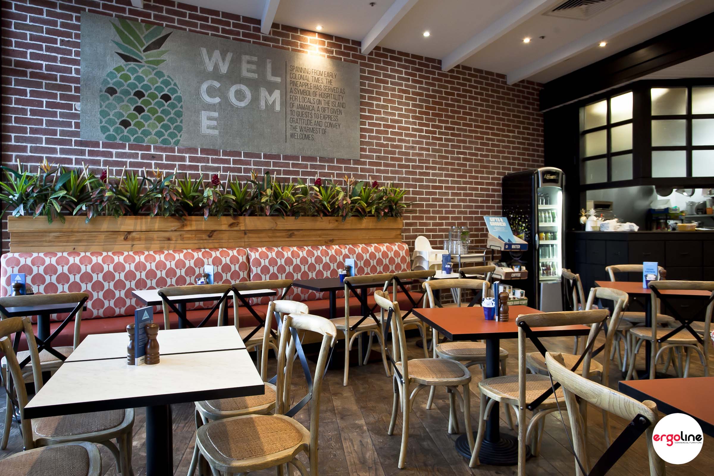 To get the store updated to the new decor, several additions such as new furniture were added while some existing items were upgraded. Our scope included the task of re-upholstering all the existing booth seating and tub chairs, and providing new internal loose furniture for the venue.