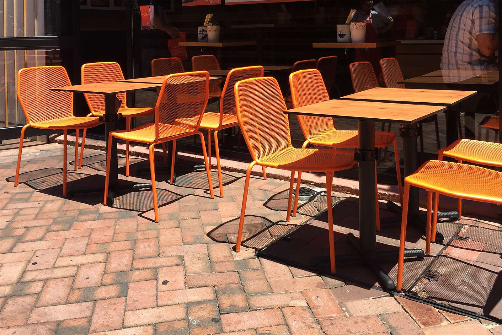 The owners of Noodle Forum were looking for outdoor furniture to compliment their bright orange colour theme.