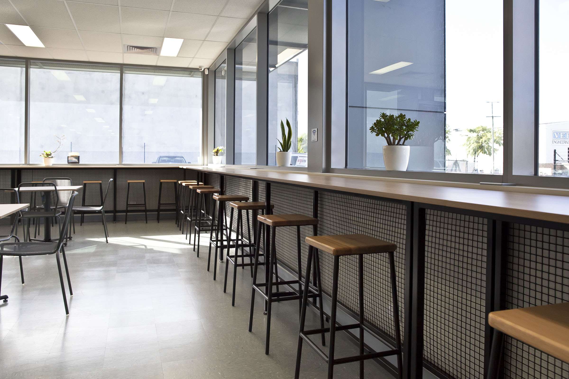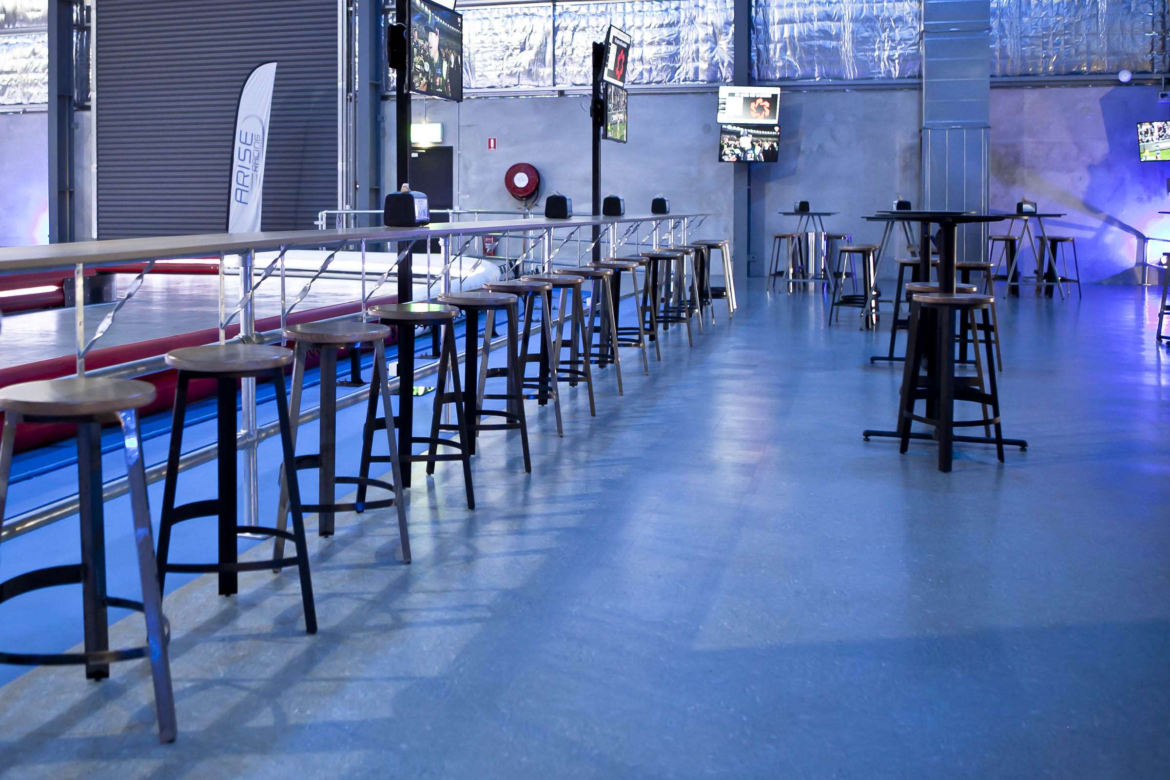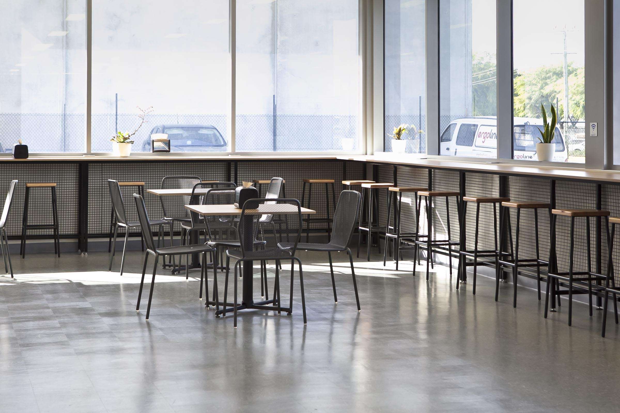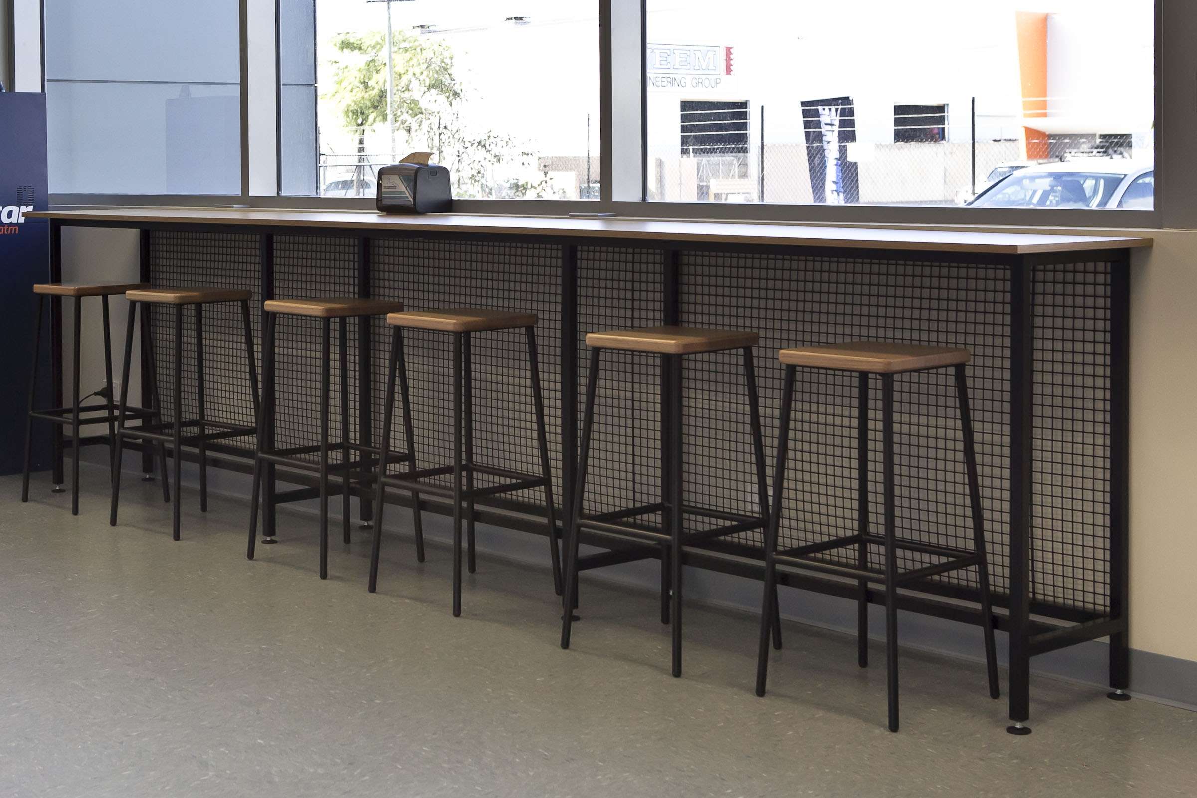 We were tasked to provide a design for this massive venue. Keeping with the modern industrial look of the venue, we supplied Tripod Bar Stools in powder coated and raw steel finishes complemented with timber seats.